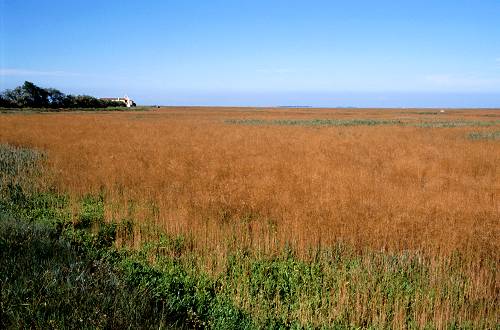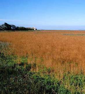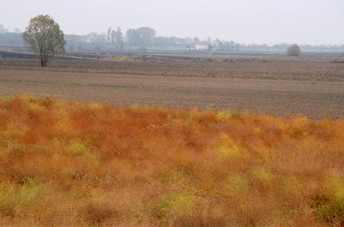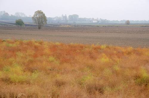 Un orizzonte fatto di erbe palustri dai colori caldissimi con, nel mezzo, il