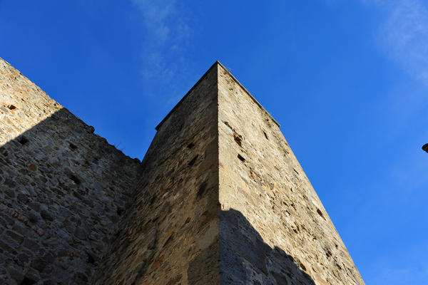 Costeggiando la recinzione in breve ci appare la grande torre campanaria e le cortine murarie della chiesa.