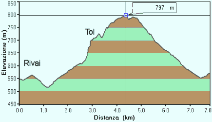 Muovendo dal cimitero di Rivai (unico parcheggio, m. 530) si continua per la strada asfaltata verso Rivai per circa 300 metri, dove sulla destra (cartello) si stacca la stradina di Tol.