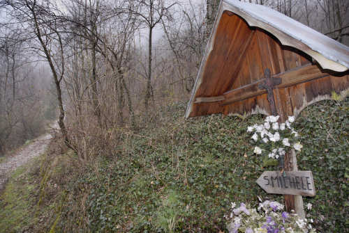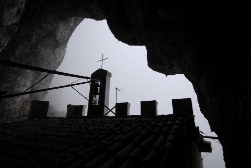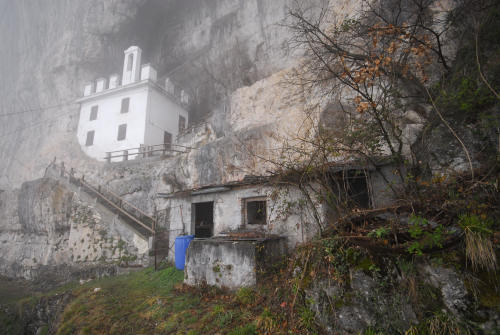 Sono le caratteristiche costruzioni posizionate su di una nicchia (Covolo di San Michele, m.550) della parete rocciosa alle spalle del paese, un piccolo oratorio dedicato a San Michele, la statua della Madonna in un grande e suggestivo ripiano esposto sul vuoto e la casa del custode o 'guardiano del fuoco', detta 'castello' per via delle merlature e della campanella riparata dal grande 'covolo' (grotta aperta).