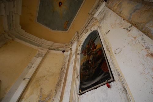 La piccola chiesetta con la bellissima tela, di pittore ignoto, raffigurante San Michele e l'Occhio Divino affrescato sul soffitto è molto danneggiata dall'umidità e da vecchi restauri, ed è tuttora in restauro.
