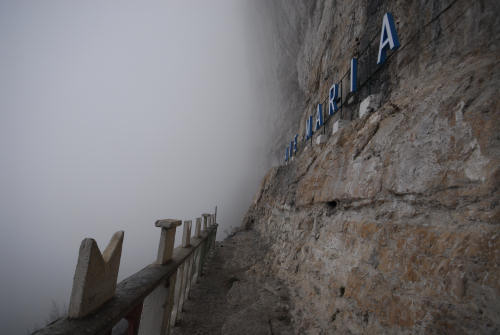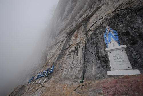 La statua della Madonna con la grande scritta è degli anni cinquanta.