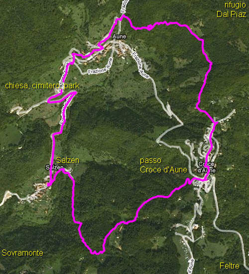 | percorso | Aune, Salzen, Croce d'Aune, Aune |