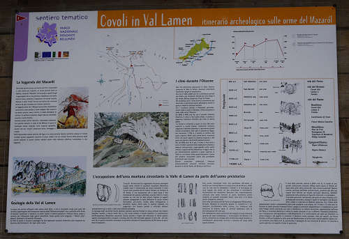 Una escursione che si può dividere in due parti. La prima facile ma con qualche tratto di ripida salita, comunque percorribile da tutti, per la visita ai covoli di Lamen e ai ripari Tomass, la seconda riservata esclusivamente ad escursionisti esperti, con qualche tratto esposto ed attrezzato, che sale ai covoli alti e traversa ai monte Pafagai.
