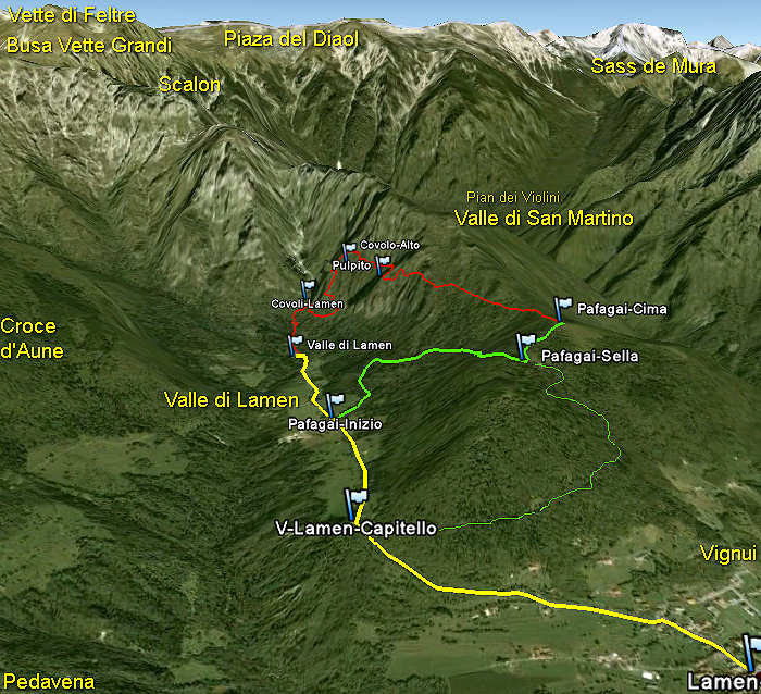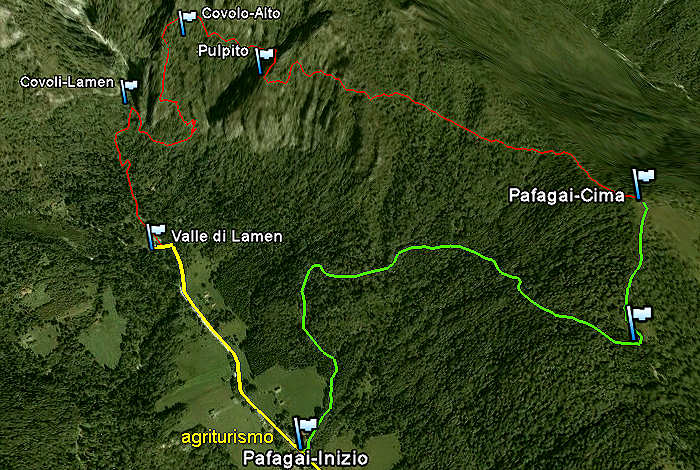 | luoghi | agriturismo V.Lamen, sella Pafagai, monte Pafagai, Covoli Alti, la Scaleta, Boal de l'Armenta, Covoli Bassi, park fine strada Val di Lamen |