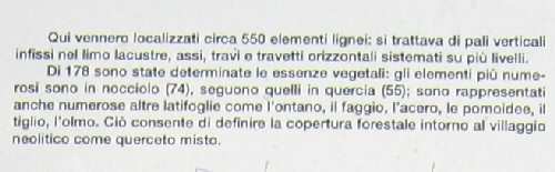 Si ha ragione di ritenere che già con l'età del Bronzo l'area fosse ormai ridotta a una palude. La documentazione paleobotanica raccolta permette di avere informazioni sull'ambiente, l'alimentazione e le tecniche agricole: sono presenti cereali, frutta, semi di lino.