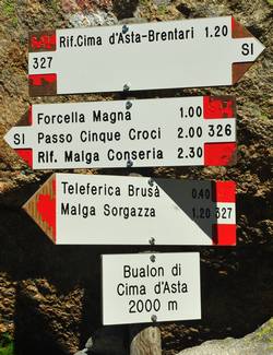 Dal rifugio alla Cima d'Asta, per i più allentati, sono da mettere in conto altri 400 metri di dislivello e almeno un'altra ora e mezza di tempo.