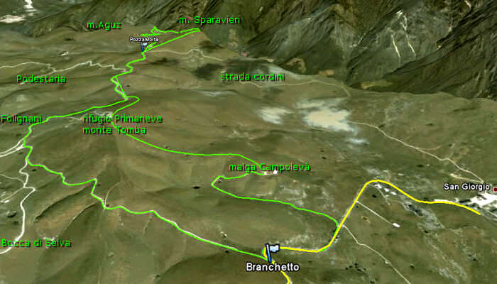 | escursione passo Branchetto rifugio Primaneve monte Tomba Pozza Morta monte Sparavieri Podestaria bivio Folignano | |