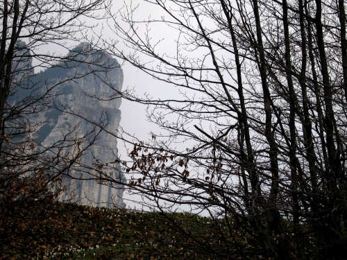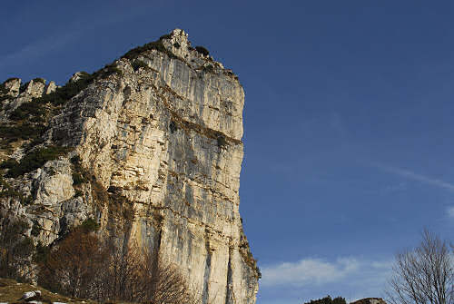 Un sentierino aggira il paretone a nord ovest e permette di salire agevolmente alla cima che verso il Campogrosso rivolge una bella parete di un centinaio di metri, giusto quello che serve per considerarla una comoda palestra di roccia.