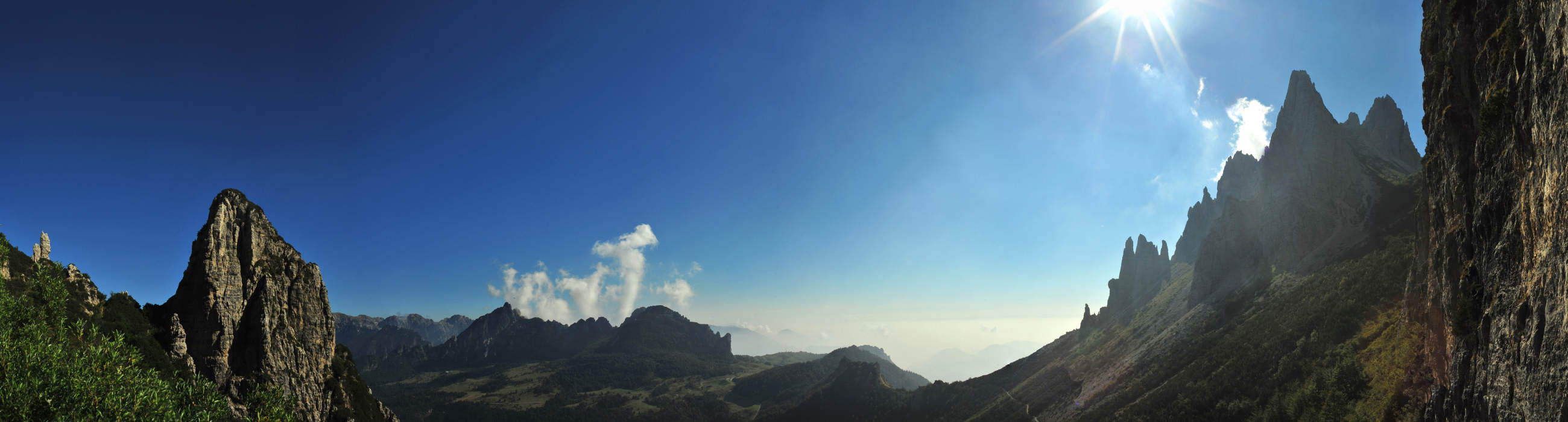 dal Boale dei Fondi al Carega, verso il Sengio Alto, l'Alpe di Campogrosso e sulla destra le guglie del Fumante