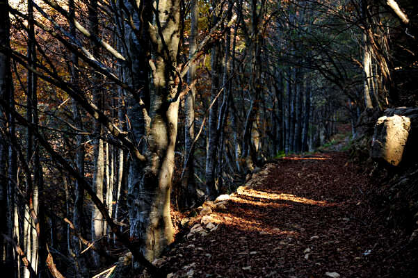 Verso destra seguire una stradina militare selciata restaurata per scollinare e scendere verso sinistra riprendendo una stradina sterrata.