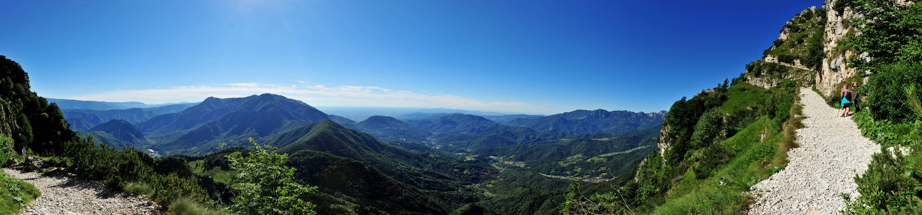 Strada delle gallerie al Pasubio: sotto la Bella Laita dopo le prime gallerie, verso il Novegno e la val Leogra, a sinistra l'altopiano e la Val d'Astico