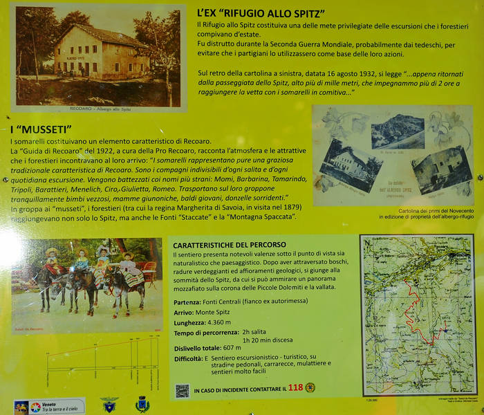 Punto di riferimento, prima della realizzazione della seggiovia, poi cabinovia, di Recoaro Mille del secondo dopoguerra, era l'albergo/rifugio al Monte Spitz, distrutto durante la guerra in una azione di rastrellamento contro i partigiani, del quale possiamo vedere alcune cartoline postali di fine ottocento.