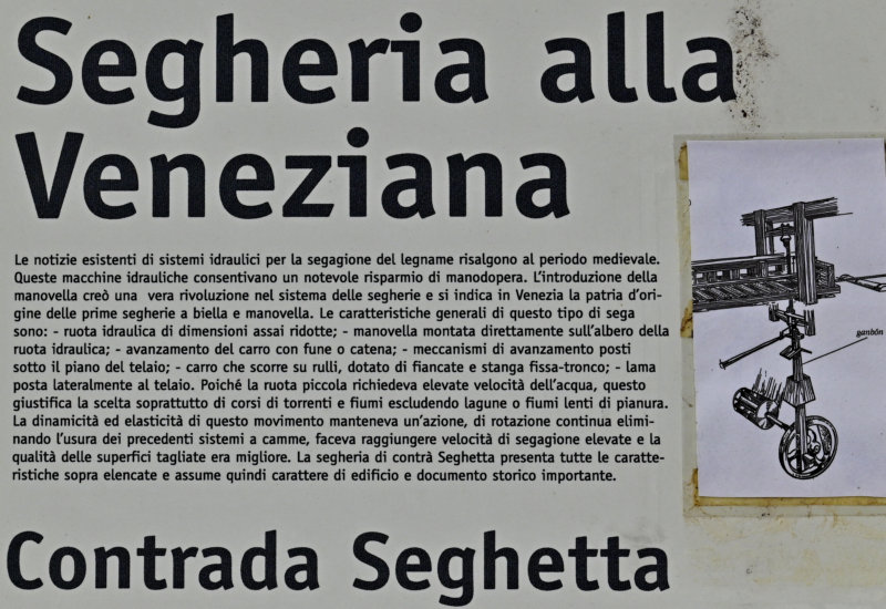 La segheria "alla veneziana" è rimasta in funzione attivamente fino agli anno ottanta del secolo scorso, ed è ancora mantenuta perfettamente. Non è un museo.