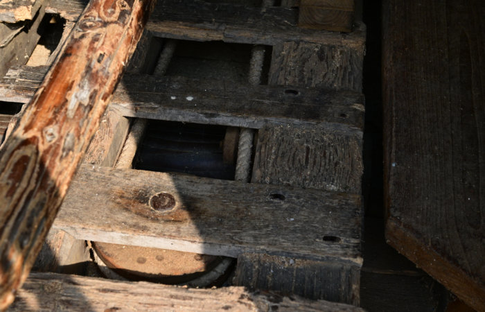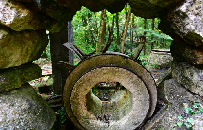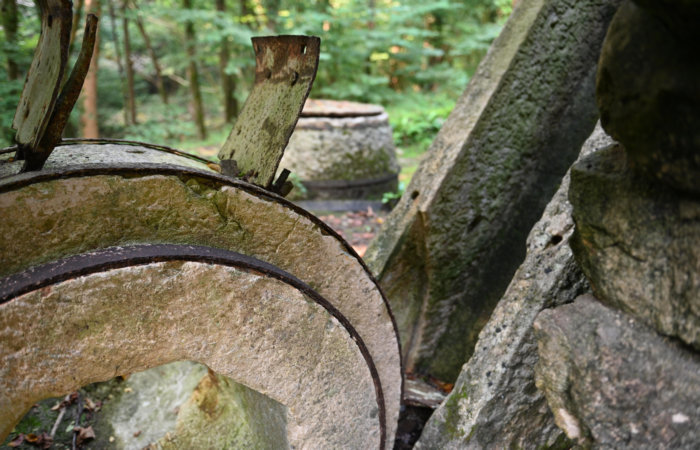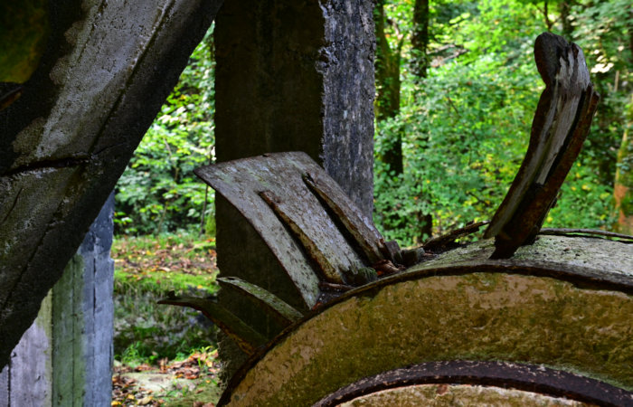 Ma quello che lascia stupiti, senza parole, che ti prende come un pugno secco nello stomaco e ti strozza la gola fino a farti piangere di commozione è la massiccia ruota in rovina che azionava il grande maglio, il martellone.
