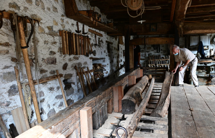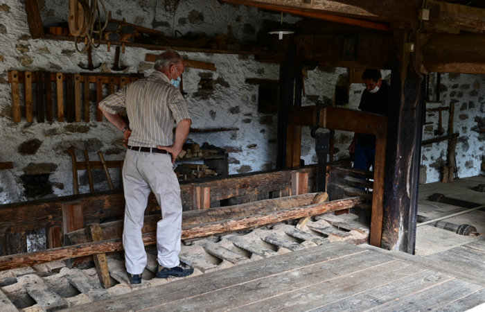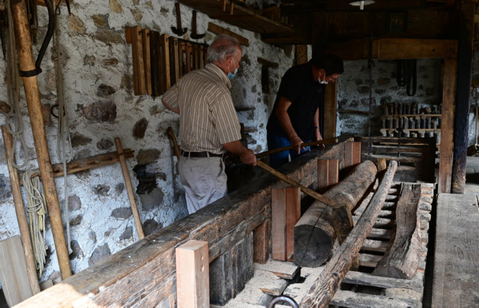Generalmente, alla domenica mattina nel periodo estivo, la segheria viene messa in funzione e questo ci permette una straordinaria esperienza conoscitiva di quello che fu per secoli il lavoro artigiano, fatto di tanta, tanta, fatica ed anche di tanto, tanto, tantissimo ingegno.