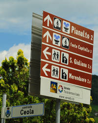 Possono aiutare alcune segnalazioni di percorsi per nordic walking e qualche vecchia e precaria tabella.
