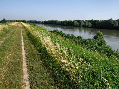 da Legnago a Rovigoargine destro, percorso principale lungo gli argini sterrati |