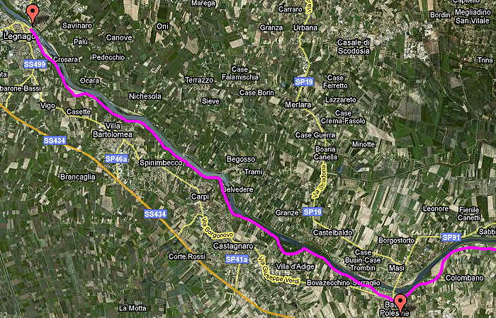 Verona-Legnago 55 km. + Legnago-Rovigo 50 km. + Rovigo-
