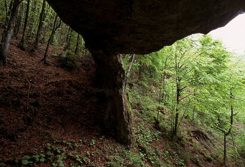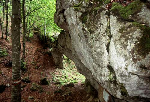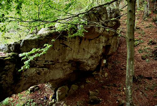 Seguire lungamente le indicazioni dell'altavia 'Sentiero Panoramico dal Grappa al Cansiglio' in direzione Praderadego, poco oltre la Forcella delle Fede un piccolo cartello indica il poco battuto sentierino che scende nel fondo della valle, superata una stradina forestale scendere ancora un centinaio di metri.