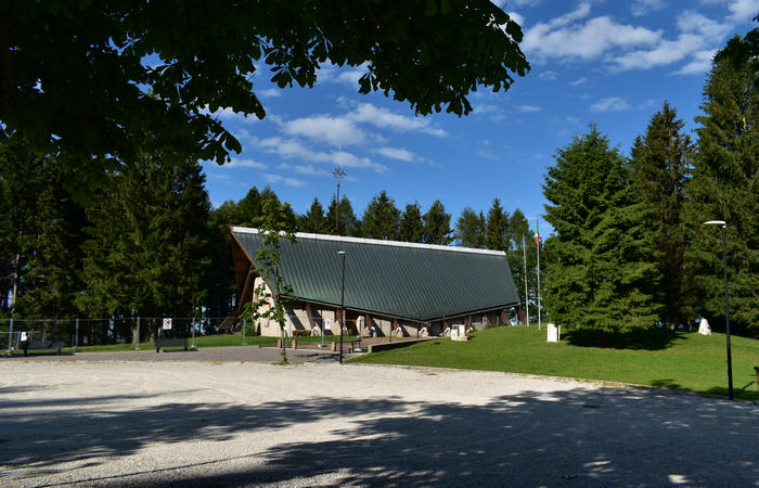 Poche centinaia di metri, in discesa, lungo l'asfalto della strada principale, un po' trafficata (specie di ciclisti) la domenica, e siamo nuovamente al vivace piazzale di Pianezze, con il Tempio al Donatore di Sangue.