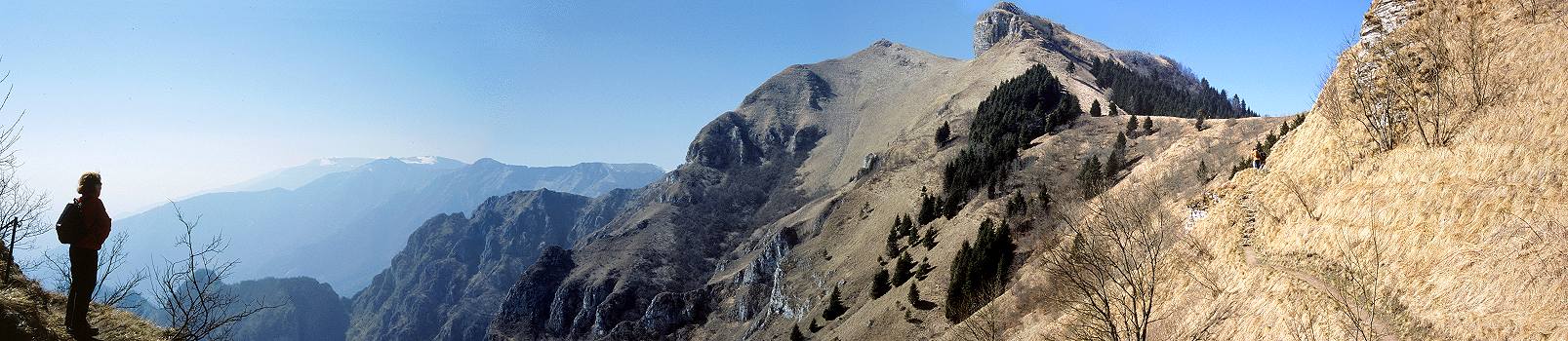 Lungo il sentiero che porta al bivacco dei Loff (loff=lupi)(m.1.100) nei pressi del passo di San Boldo (m.715). Sulla destra Cima Vallon Scuro (m.1.286) e Croda Val della Pila (m.1.254) (o Crodon del Gevero). Prealpi trevigiane-bellunesi dorsale del Cesen-Praderadego-Boldo-Visentin. Cison di Valmarino (Treviso).