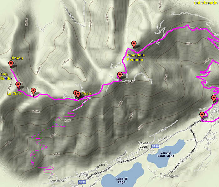 | traccia Gps dell'escursione e itinerario interattivo con Google/Earth escursioni dal Pian dele Femene |