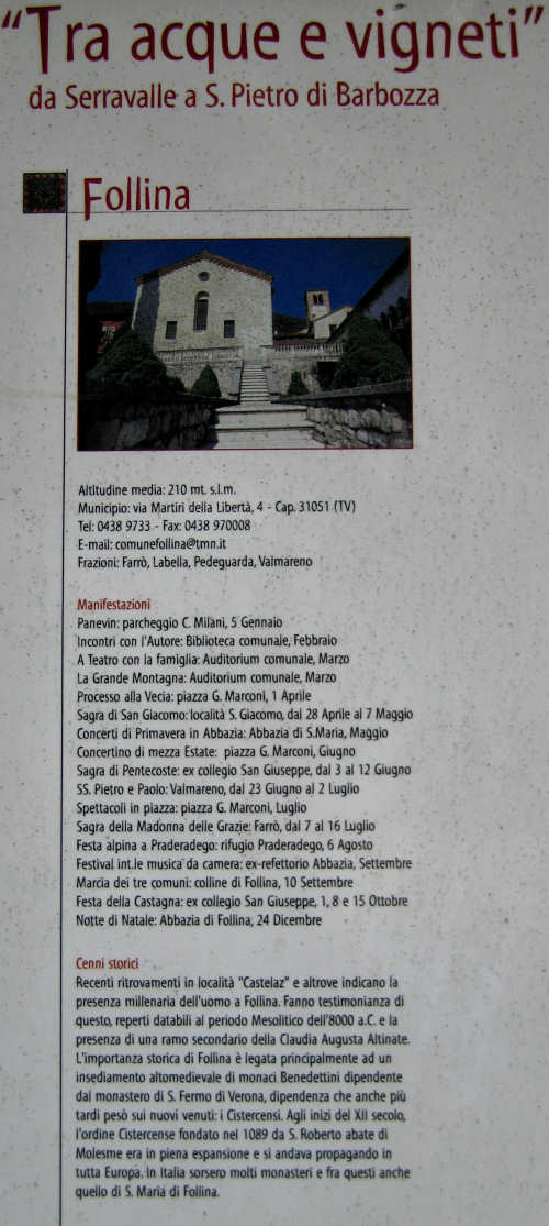 Schede e foto tratti dai pannelli illustrativi a cura del Comune di Follina e dell'Abbazia.