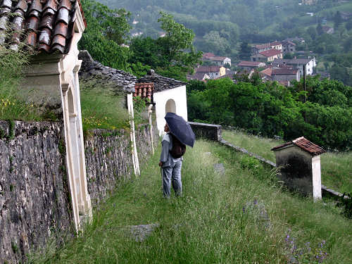 Di notevole fascino la gradinata d'accesso che parte dalla piazza del paese, affiancata da particolari capitelli votivi della Via Crucis.