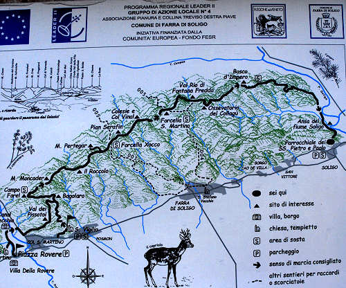 Oltre a ritonrare per il medesimo itinerario, si può proseguire verso le Torri del Credazzo o scendere per varie stradine verso sud a Farra di Soligo.