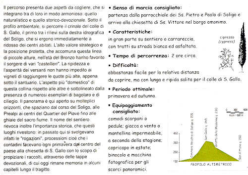 Partendo dal piazzale della chiesa parrocchiale di Soligo (comune di Farra di Soligo), si possono compiere alcune semplici ed affascinanti passeggiate che in ogni stagione dell'anno offrono scorci e dettagli spettacolari.