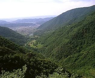 Si prosegue lungamente nel bosco sulla stradina sterrata, sempre con fondo buono, principalmente pianeggiante o con qualche facile salitina, fino a sbucare ad un gruppetto di povere case in splendida posizione panoramica. Da qui con alcuni tornanti su strada asfaltata si piomba nel fondovalle della strada statale che sale verso il San Boldo, che si raggiunge in breve.